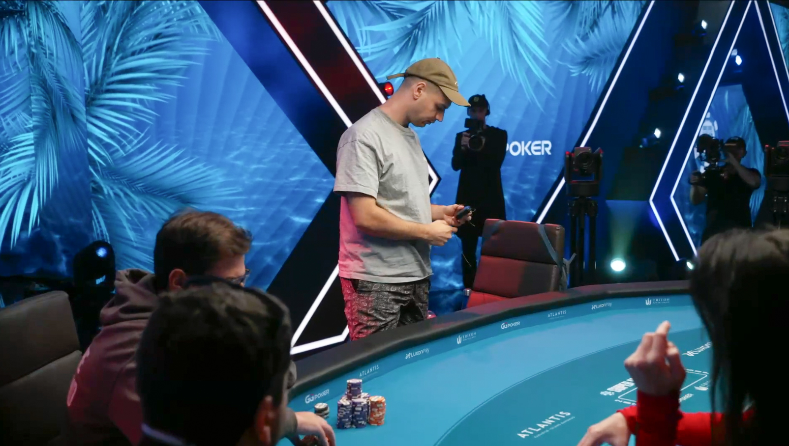 El final se acercaba el representante de Brasil era llevada a una esquina del salón para recibir el parche honorifico de GG Poker, para enfrentar sin saber una lucha frente al Team Pro de Winamax Kanit , quién decidió pagar el All In de